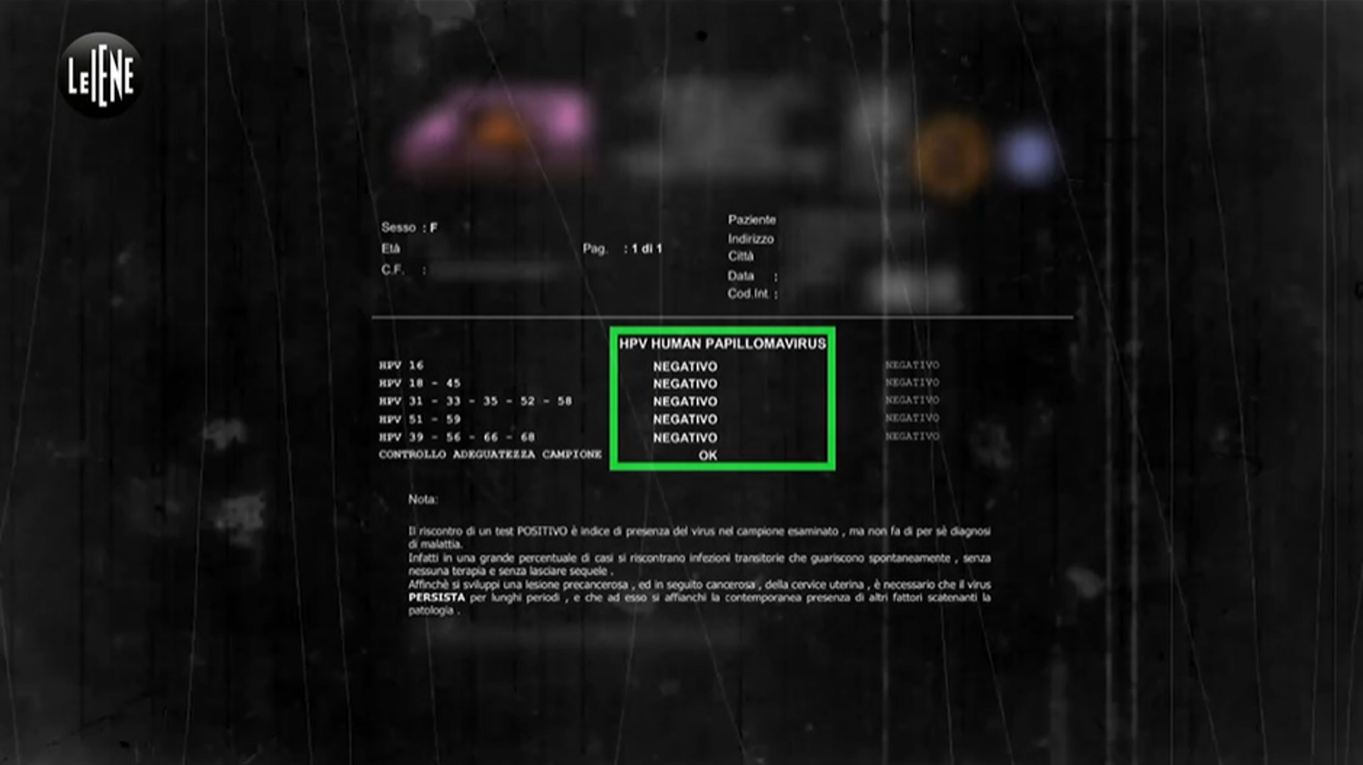 ↑女病人的檢測報告全部呈陰性,後來證實她身體健康,但米尼洛說她感染HPV病毒,很可能變成癌症。(《Le Lene》截圖)